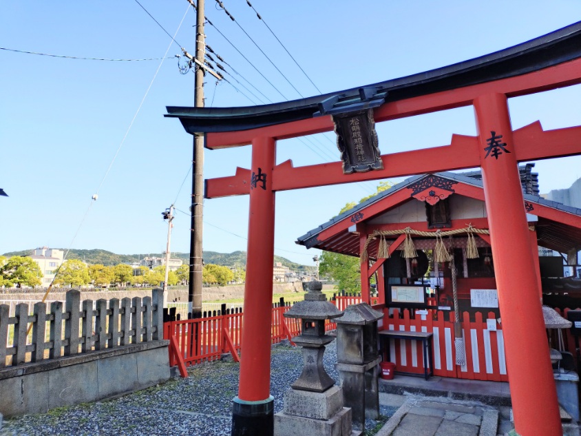 七条大橋の隣に松明殿稲荷神社。鴨川の眺めるのも良いです。