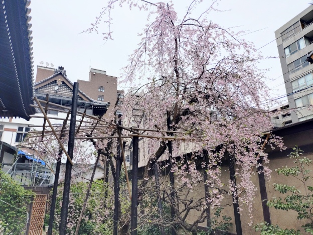 こちらは、本堂右側奥の枝垂れ桜。境内は混んでいるのにあまり知られていないのか、見ている人はとても少なかったですね。この枝垂れ桜は比較的長めに咲いてくれています。