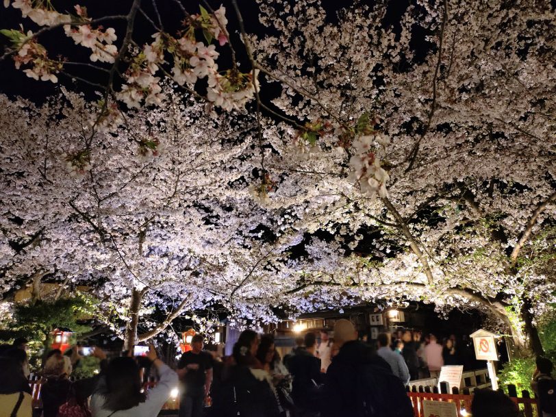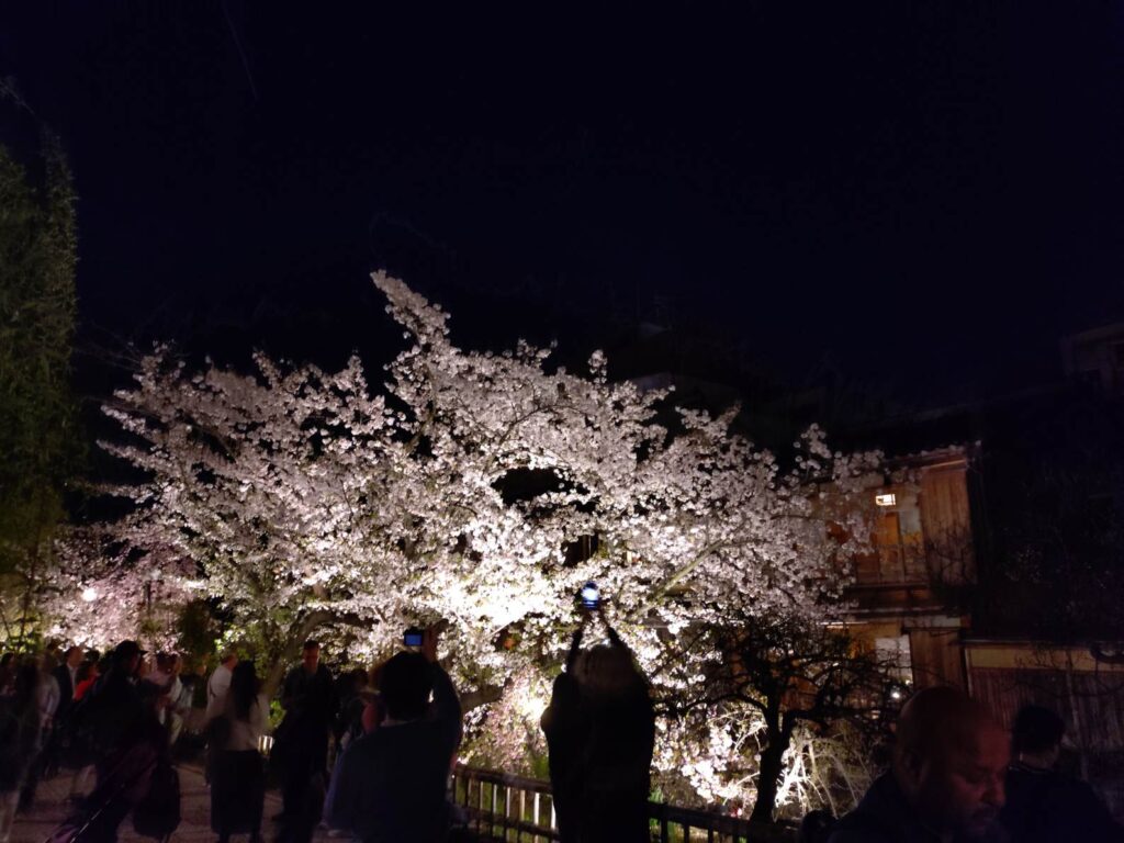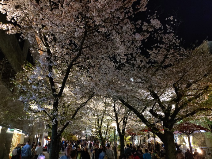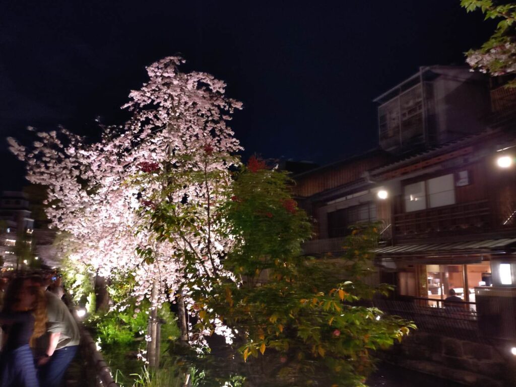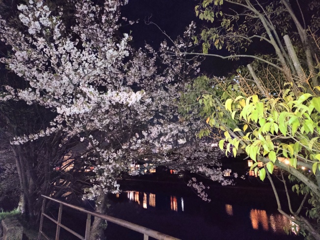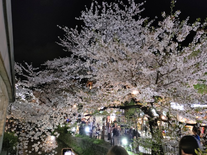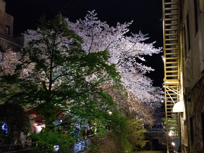帰宅してから、妻と花見へ出かけます。今シーズンは最後の花見かも。まず四条木屋町へ。思ったよりも散っていませんでした。